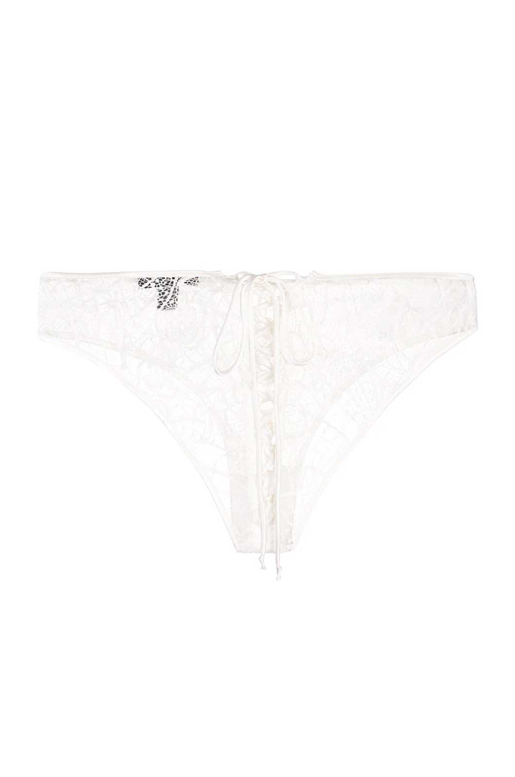 With an allover white lace and a low rise fit, this flirty sheer corset panty is our take on sexy. Pair it with the Coquette longline bra for a flawless look.