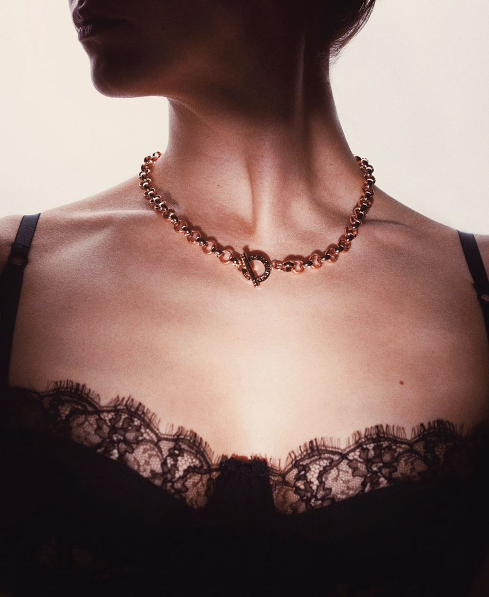 This classic Italian chain can be worn for bondage play or as a provocative hint on an evening out. Made with stainless steel for strength and 14k rose gold plated.